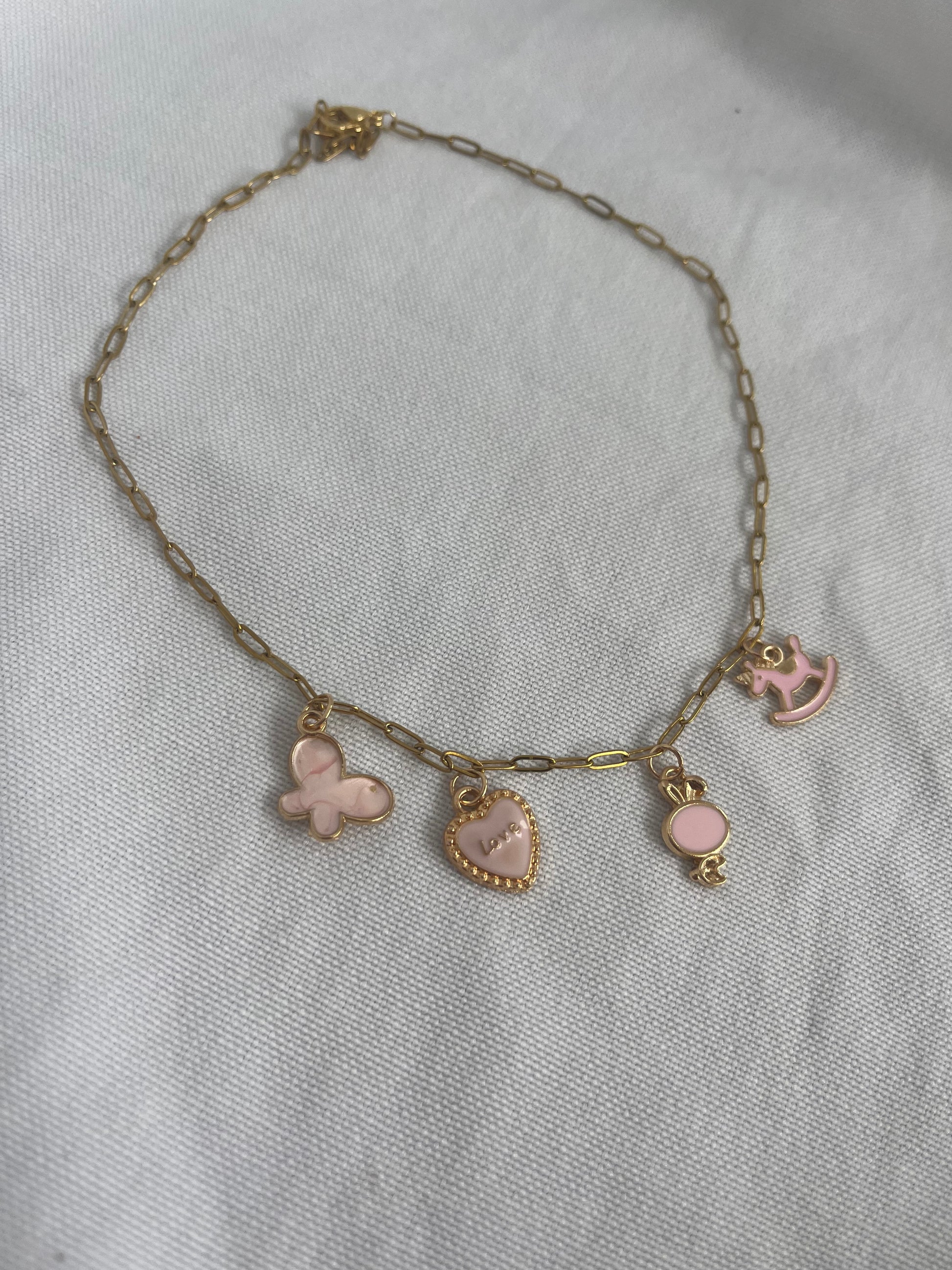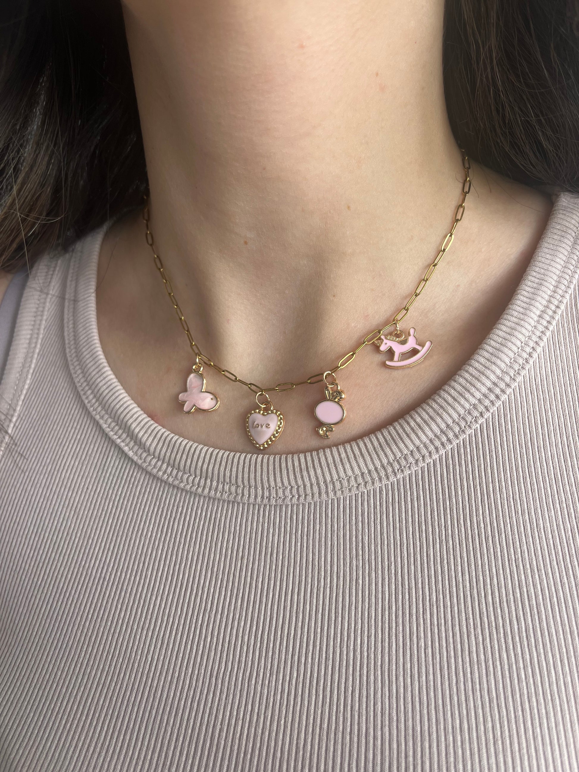 Le collier Baby Doll est une pièce douce et pleine de tendresse, pensée pour celles qui aiment les détails mignons et féminins. Avec ses charms rose pastel,il évoque l’enfance, la douceur et la nostalgie dans un esprit résolument mode.