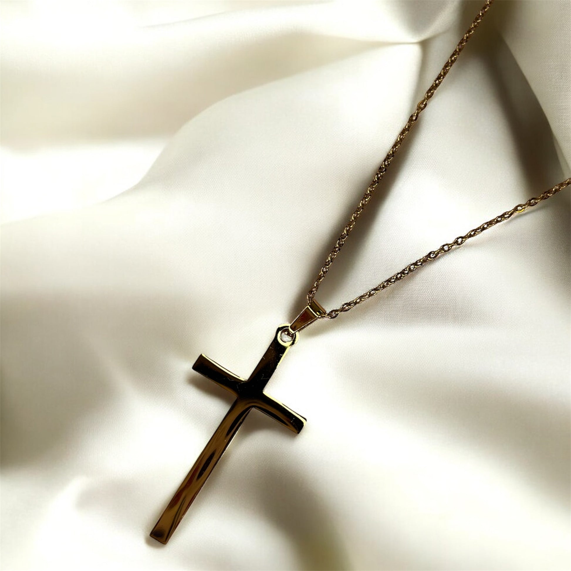 Affiche ton style avec notre collier pendentif croix en acier inoxydable doré.