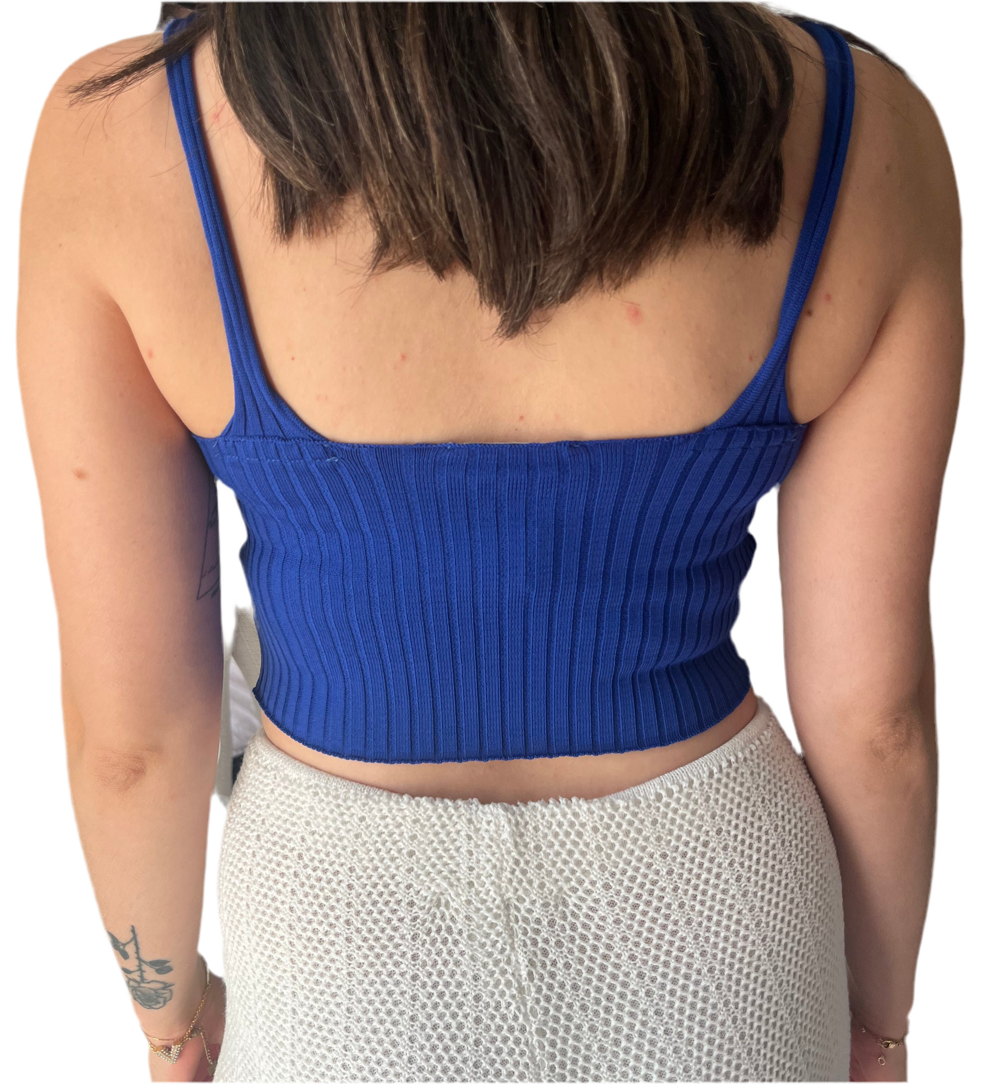 Avec sa maille cĂŽtelĂ©e et sa coupe courte ajustĂ©e, le top Celia met en valeur la silhouette tout en apportant une touche de modernitĂ©. Son bleu intense Ă©voque les soirĂ©es dâĂ©tĂ© au bord de la mer, entre Ă©lĂ©gance et fraĂźcheur.